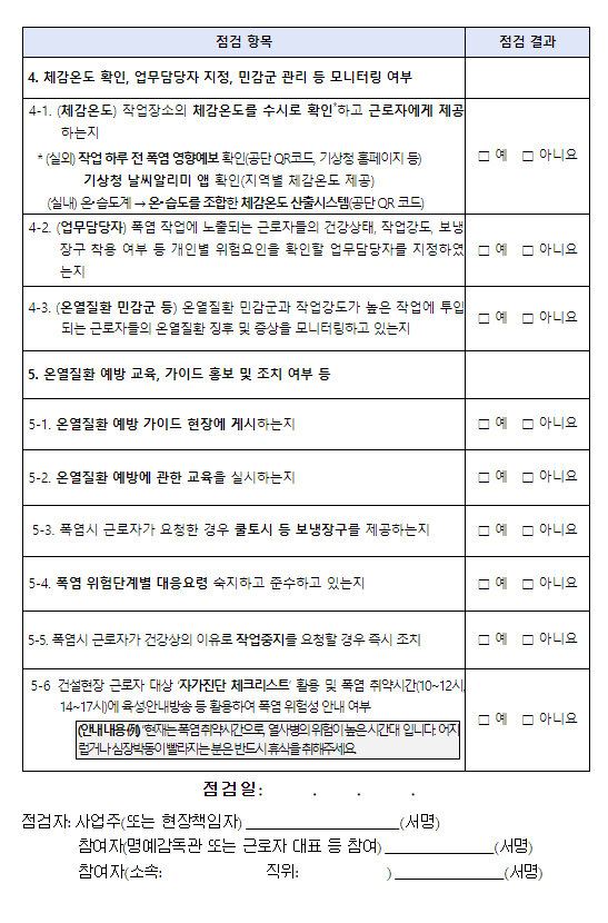 온열질환 예방 자율점검표 온열질환 예방 체크리스트 온열질환 예방 스티커