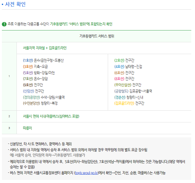 ※ 버스의 경우 서울시 면허 버스는 서울지역 외에서 승하차하더라도 기후동행카드 사용가능
