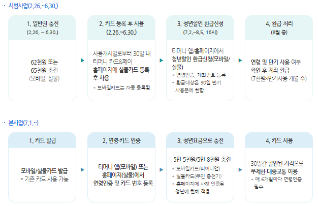 - 본 사업(7.1(월))부터 별도의 청년요금(5만 5천 원, 5만 8천 원)으로 충전 가능