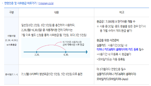⊙연령인증 및 사후 환급 바로가기 : t-money.co.kr