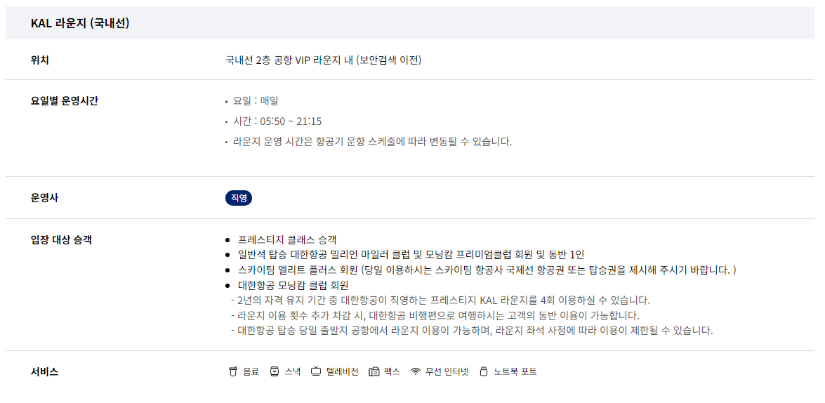 김포공항 대한항공 라운지 제주공항 대한항공 라운지 부산 김해공항 대한항공 라운지 칼라운지 국내선 국제선 위치 이용시간 이용방법 입장 대상 서비스 가격