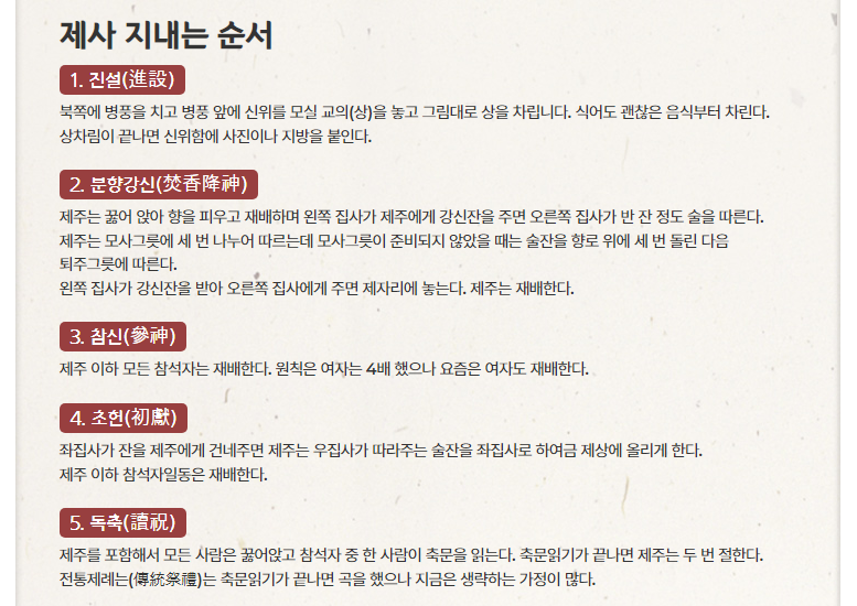 제사 지내는 방법 순서 방향 상차림 사진 숟가락 위치 방향