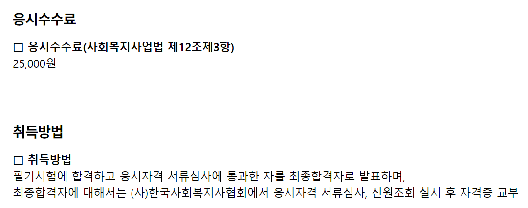 ⊙ 응시수수료(사회복지사업법 제12조제3항) : 25,000원
