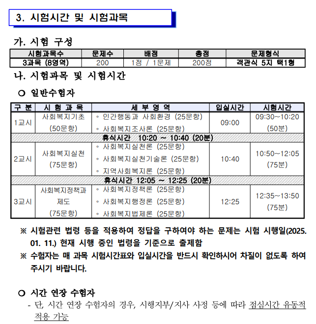 ◈ 시험 구성, 시험 과목 및 시험 시간
