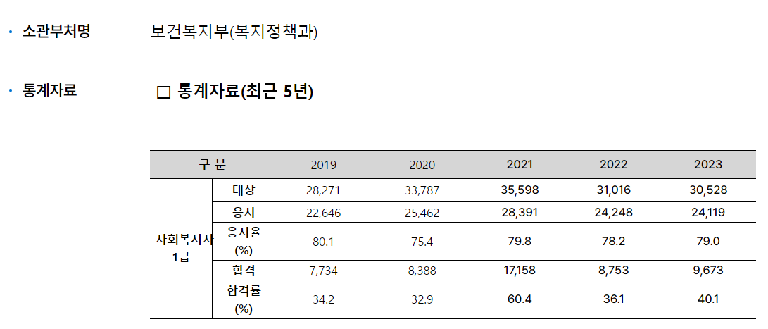 사회복지사 1급 시험 일정 응시 자격 자격증 취득방법 자격요건 시험과목 기출문제 합격률 취업분야