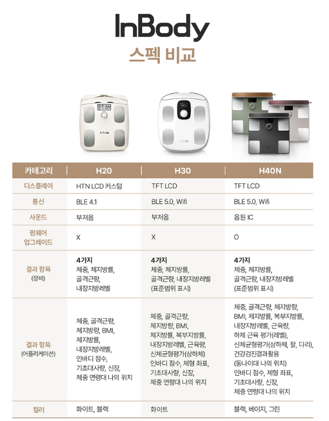 H40의 자세한 설명 전에 인바디 스펙 비교 사진 확인해 보세요.