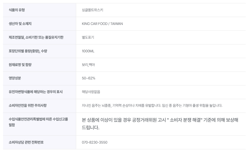 ⊙ 내용량 및 알코올(도수) : 1000ml / 58.6%