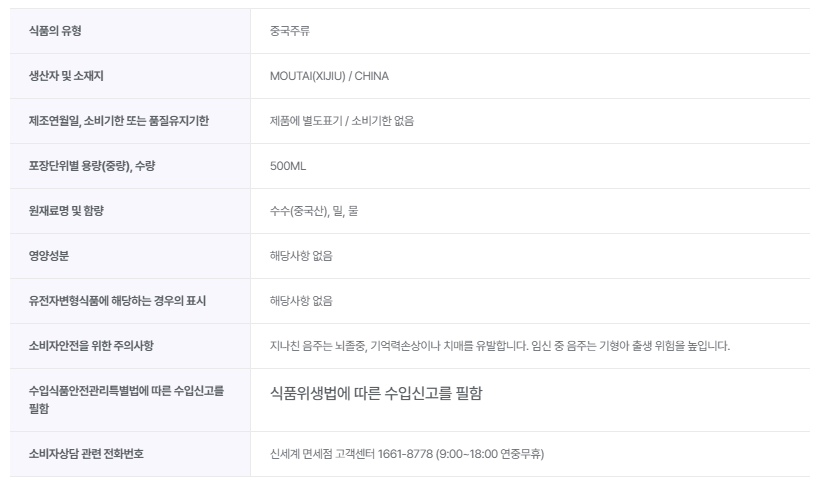 생산자 및 소재지 : MOUTAI(XIJIU) / CHINA