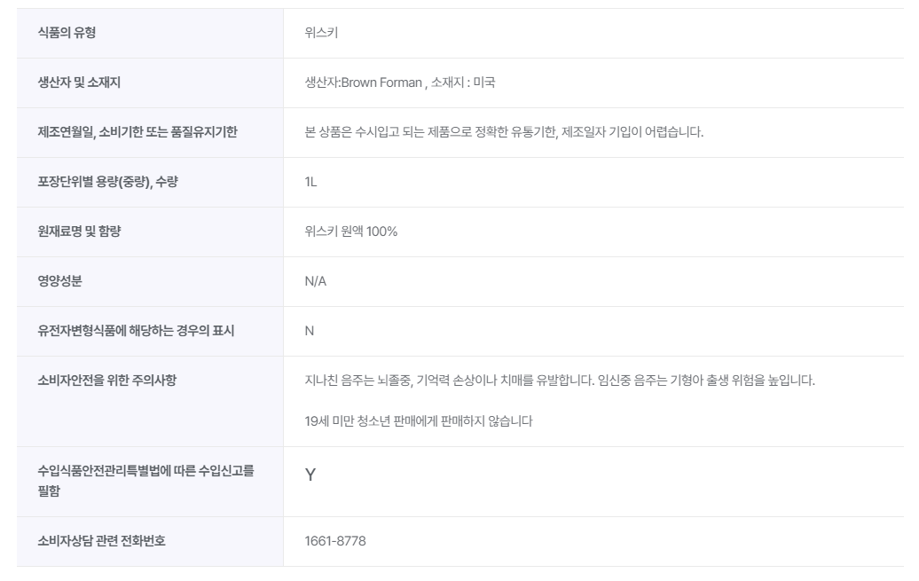 원재료명 : 위스키 100%