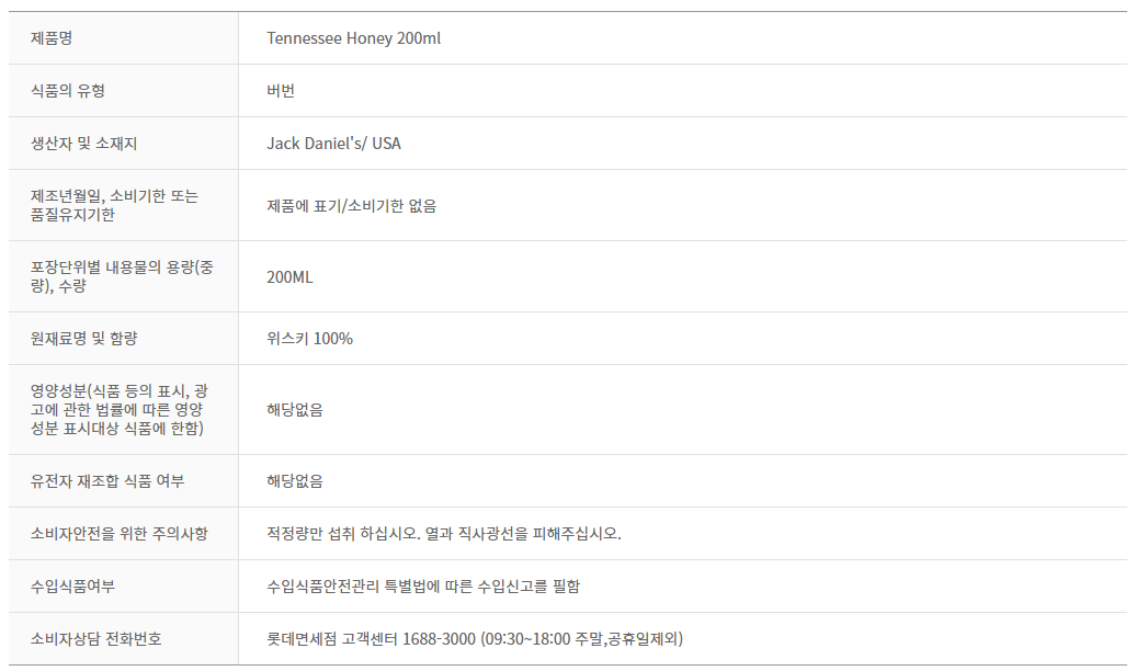 제품명 : Tennessee Honey 200ml