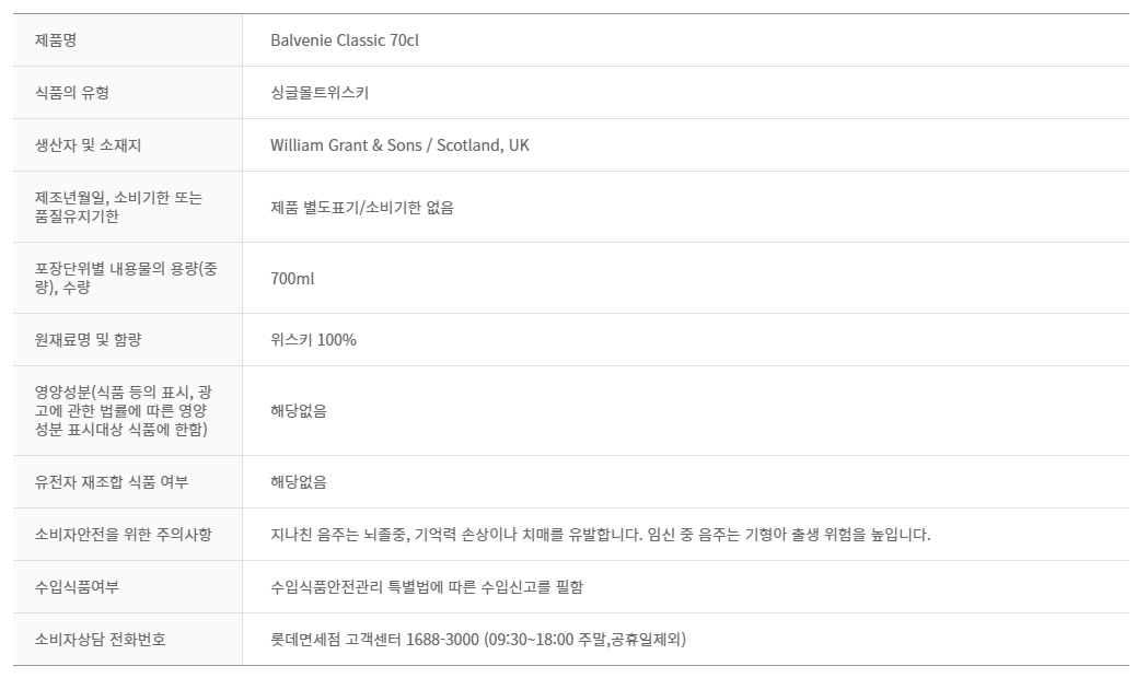 제품명 : Balvenie Classic 70cl
