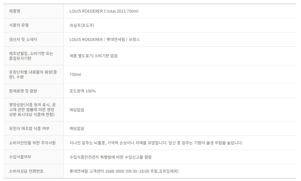 제품명 : LOUIS ROEDERER Cristal 2015 750ml