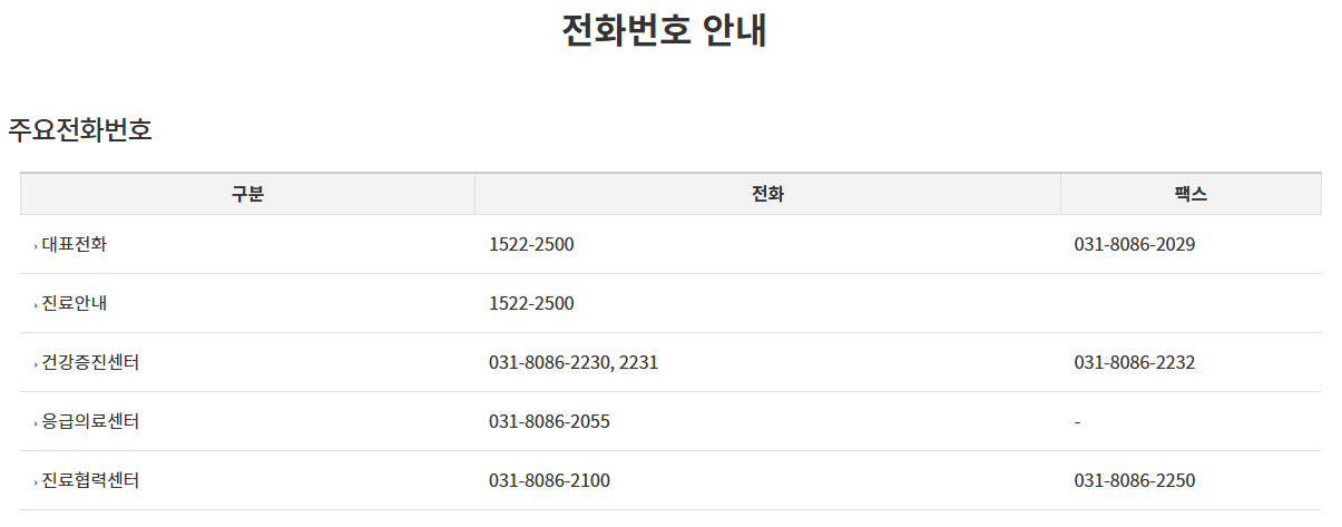 응급의료센터 : 031-8086-2055