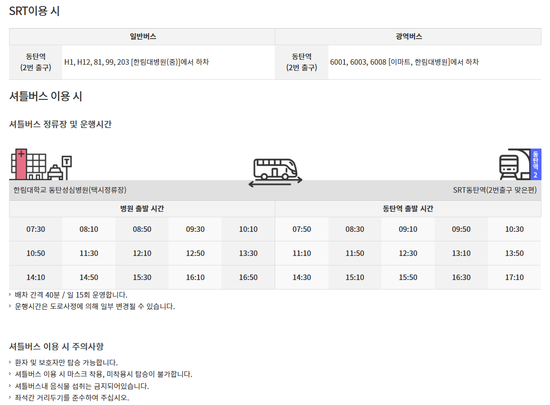 한림대학교 동탄성심병원 주차장 주차요금 무료 주차비 할인 응급실 전화번호 셔틀버스 배치도 층별안내 가는 길