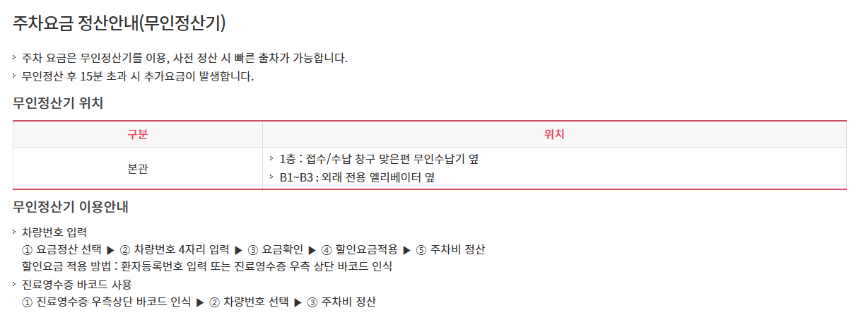 입원환자 - 입퇴원일 당일을 제외하고는 주차요금 발생(입퇴원일 제외 1일 정기권 구매 권장)