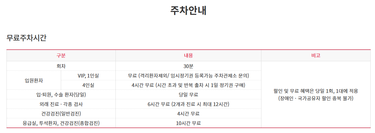 VIP, 1인실 - 무료(격리환자제외 / 임시정기권 등록가능 주차관제소 문의)