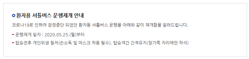 ◈ 환자용 셔틀버스 안내