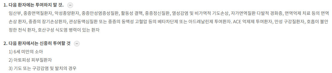 효능·효과 : lgE를 매개로 한 알러젠에 대한 특이면역요법-집먼지진드기에 의한 알레르기성 비염, 결막염, 천식의 치료