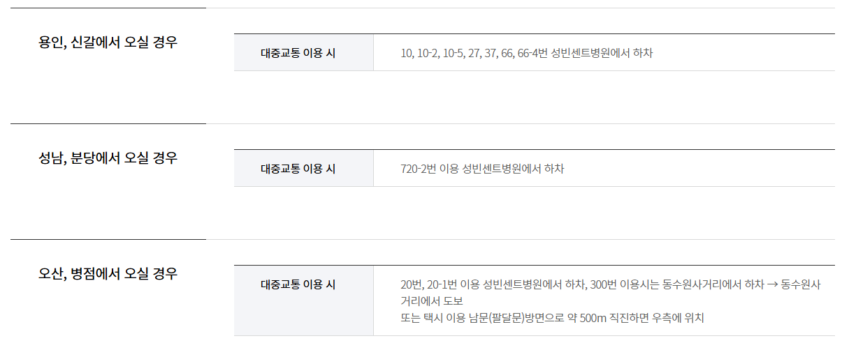 ▣ 수원역에서 오실 경우, 서울에서 대중교통 이용 시 안내(강남역, 양재역, 사당역, 남태령, 잠실역, 수서역, 지하철 이용할 경우)