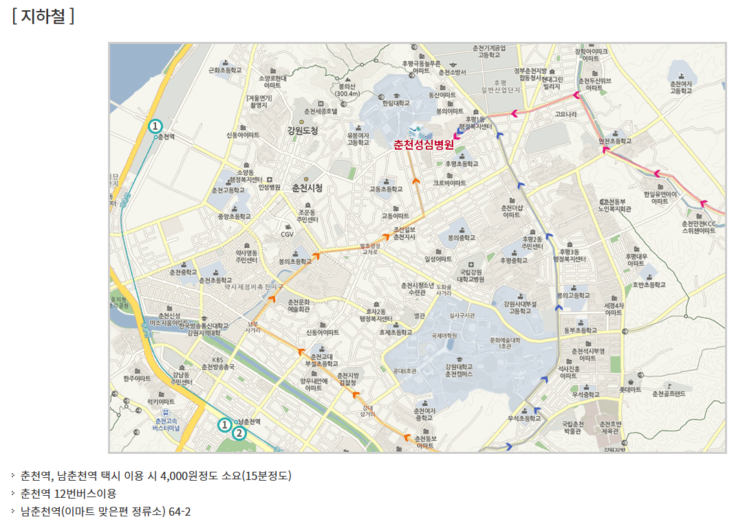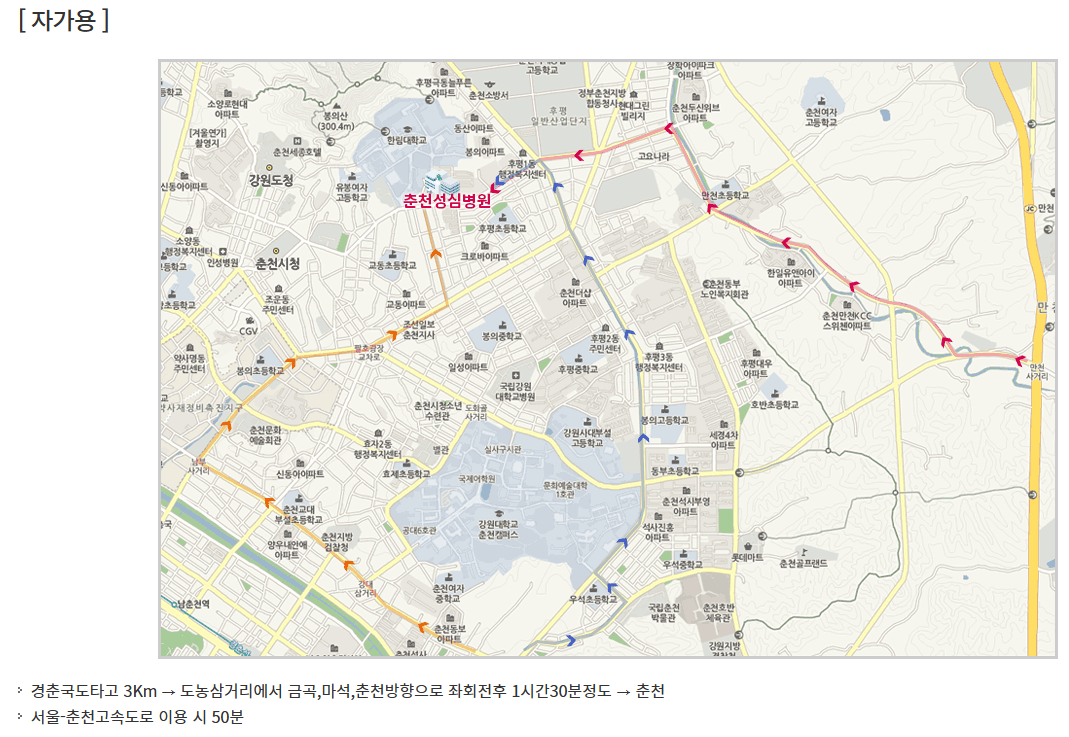 한림대학교 춘천성심병원 주차장 주차요금 무료 주차비 할인 가는 길 주변 약국 위치도