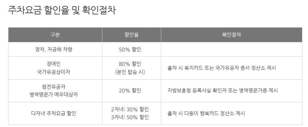 다자녀 주차요금 할인 - 2자녀 30% 할인, 3자녀 50% 할인