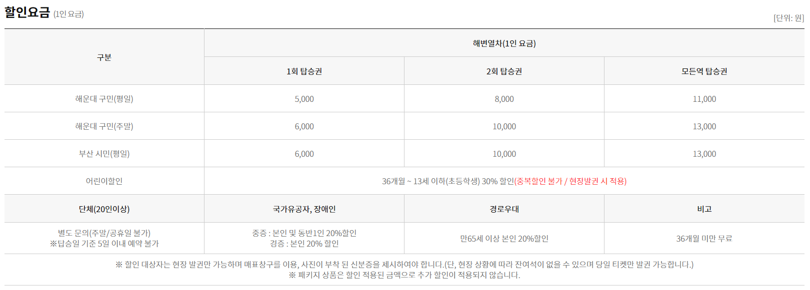 해운대 블루라인파크, 해변열차, 스카이캡슐, 패키지, 할인, 예약, 코스