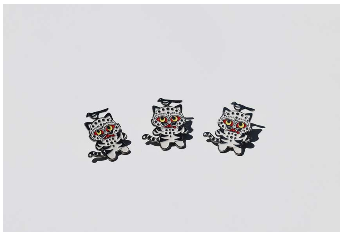 케이팝 데몬 헌터스 (케데헌) 으로 열풍을 불고 있는 2024 뮷즈 공모 선정작인 까치 호랑이 배지입니다.