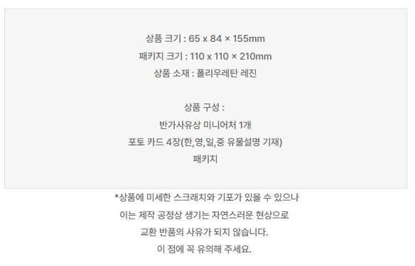상품 구성 : 반가사유상 미니어처 1개, 포토 카드 4장 (한, 영, 일, 중 유물 설명 기재) 패키지