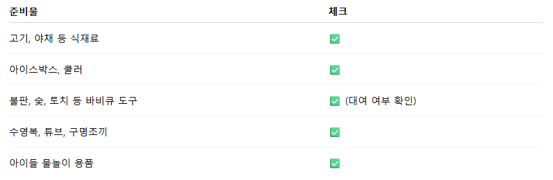 바비큐 이용 시간, 숯불 여부, 전기 사용 등 세부 조건도 체크!