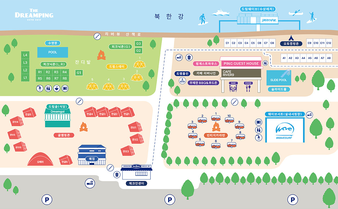 ⊙ 자연 속 캠핑장 + 대형 수영장