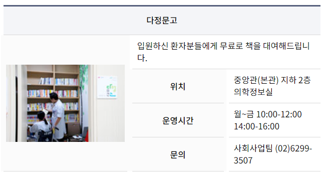 병원(병원 후문) ↔ 이수역 (08:00~11:00, 13:00~16:00), 1시간 간격 배차