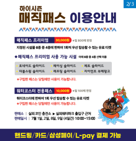 매직패스 결제는 핸드링만 가능하며, 야외 코인충전소에서 구매 가능