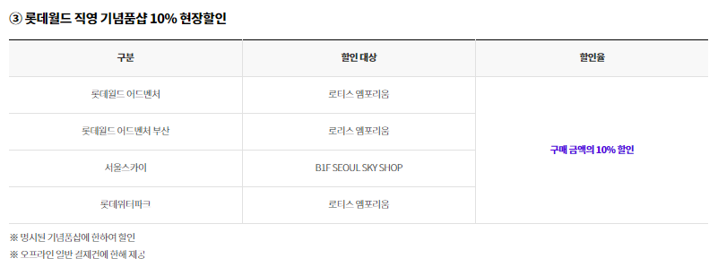 롯데워터파크 로티스 엠포리움 구매금액의 10% 할인