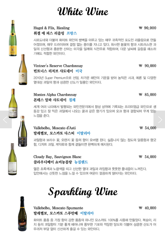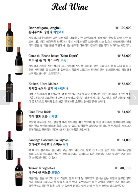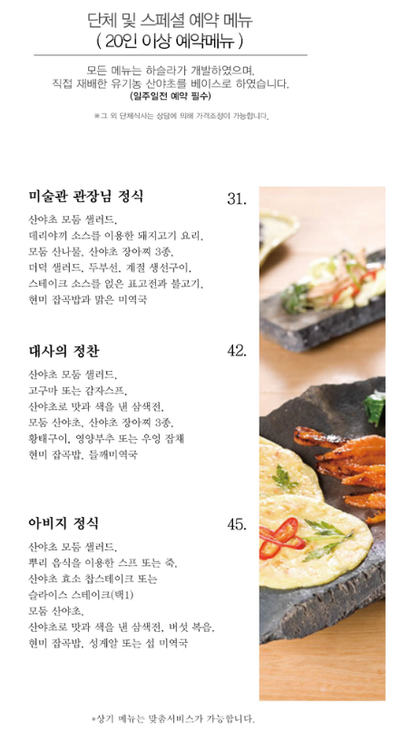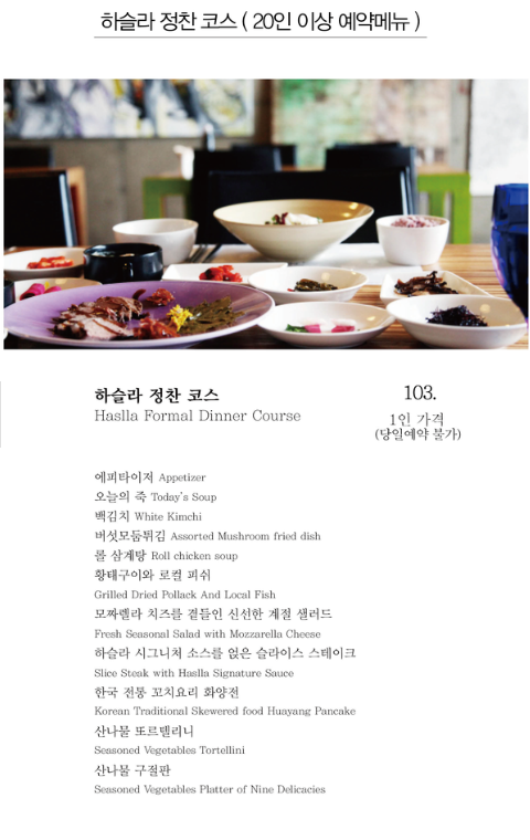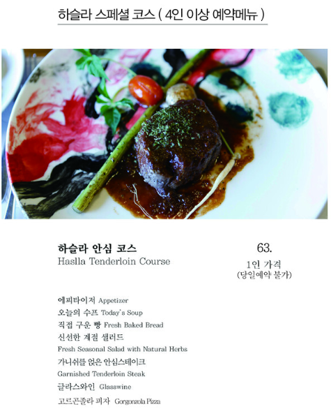 레스토랑 예약메뉴판의 메뉴는 반드시 사전에 예약을 해주셔야 가능한 메뉴