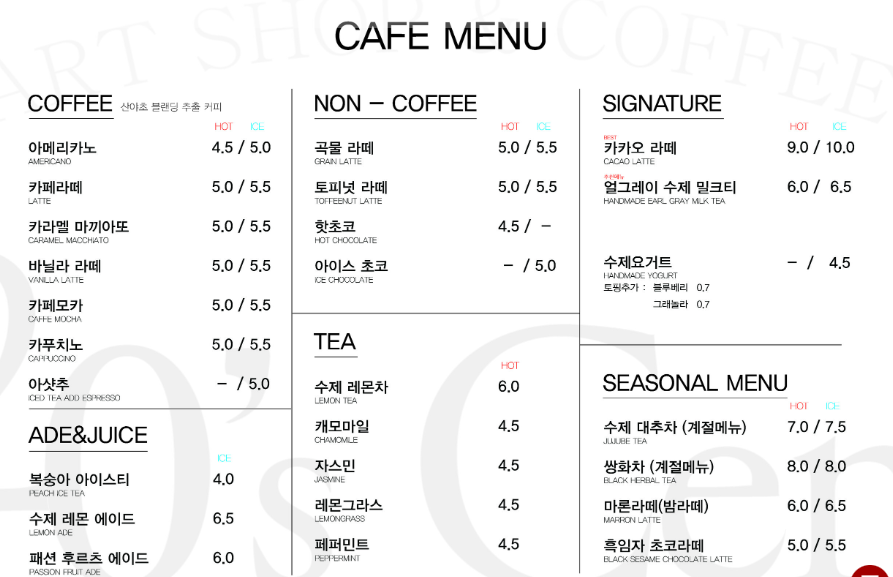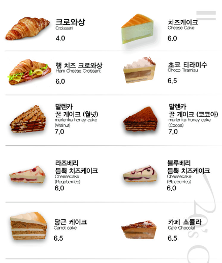 ◈ 트웨니센 카페 메뉴