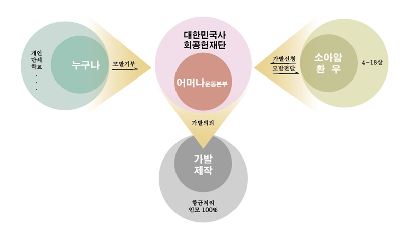치료 중 탈모로 인한 정신적 충격 및 심리적 위축감으로 대인기피증 및 우울증에 노출되는 소아암 환아의 정신적인 상처를 예방 및 치유하고 병원 생활로 일상적인 활동이 제한적인 소아암 환아들에게 기초교육과 심리치료를 제공해 사회와의 괴리를 줄일 수 있으며 작은 나눔 운동인 머리카락 나눔을 통해 기부란 누구나 쉽게 할 수 있다는 기부에 대한 사회적 인식 조성이 되니 정말 기부로 인해 서로에게 따뜻함이 전해지는 거 같아요.