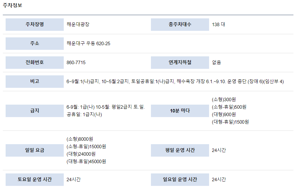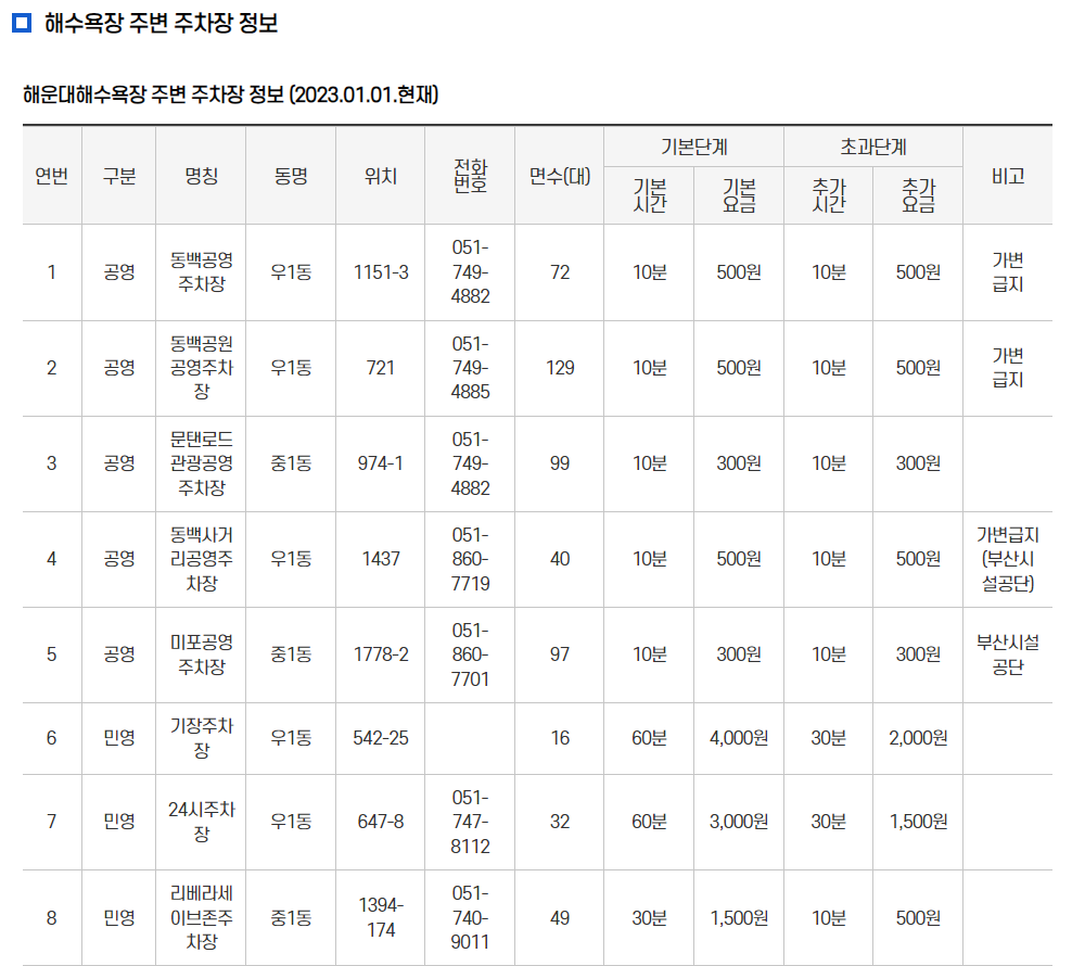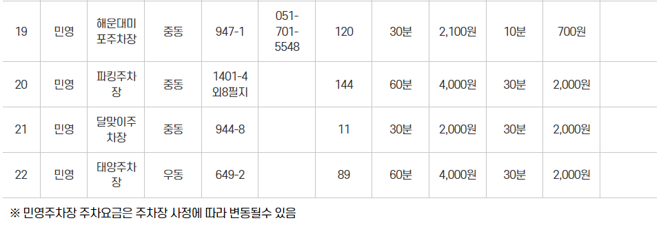 ♣ 해운대 해수욕장 주변 공영주차장과 주차요금 정보 ♣