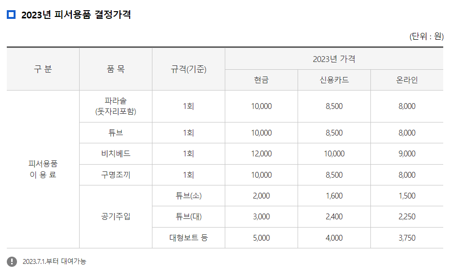 ◈ 피서용품 이용료