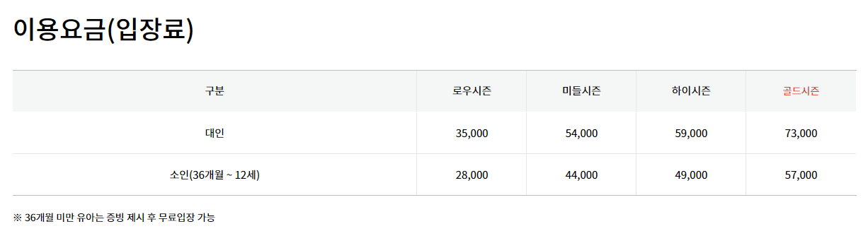 36개월 미만 유아는 증빙 제시 후 무료입장 가능