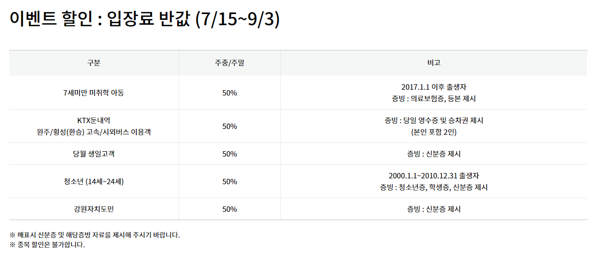 ◈ 이벤트할인 : 입장료 반값(7/15~9/3)