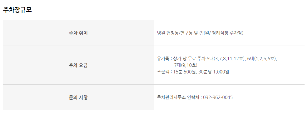 가톨릭대학교 인천 성모병원 주차장 주차비 장례식장 가는 길
