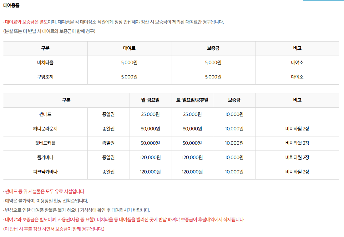비치타올 5,000원(보증금 5,000원)