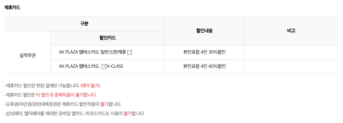 오후권/야간권/온천대욕장권은 제휴카드 할인적용이 불가