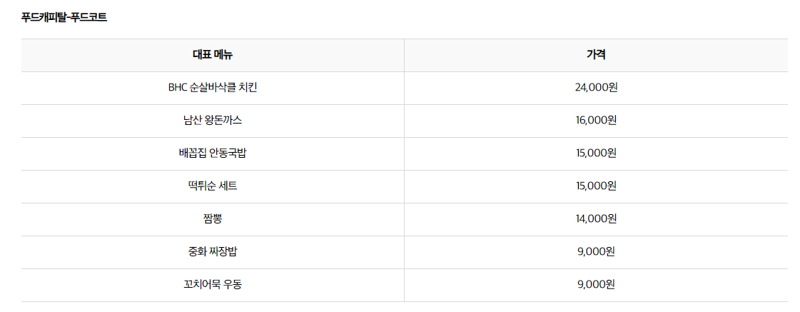 ◈ 맛집 푸드코트 가격