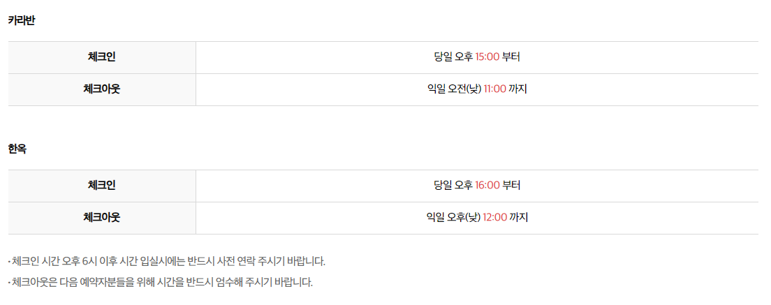 체크인 당일 오후 15:00부터체크아웃 익일 오전(낮) 11:00까지