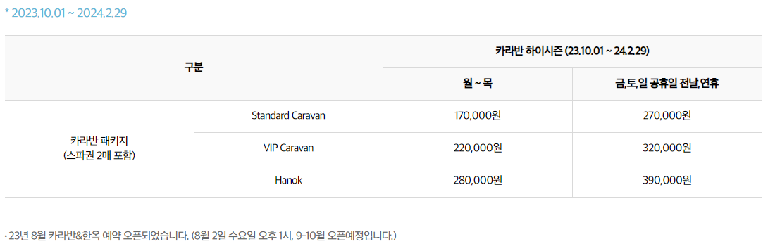 카라반 하이시즌(23. 10. 01. ~24. 02. 29.)