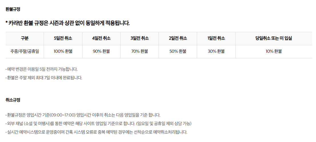 환불규정 & 취소 규정