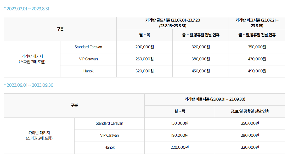 카라반 골드시즌(23. 07. 01.~23. 07. 20. / 23. 08. 16.~23. 08. 31)