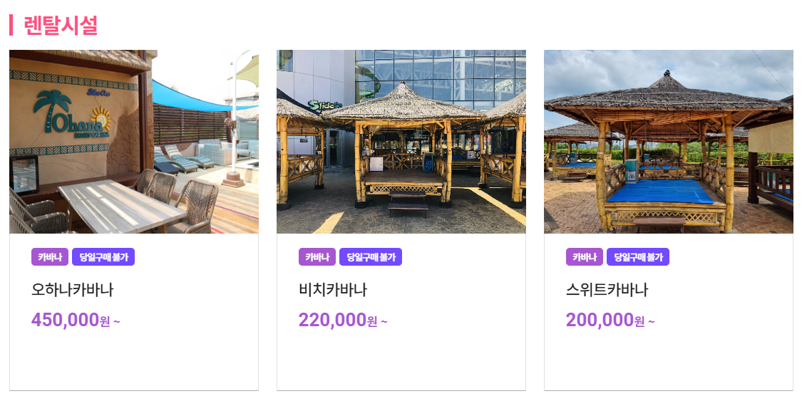 스마트 예약(이용권, 패키지, 카바나, 썬베드, 텐트, 블루코인)