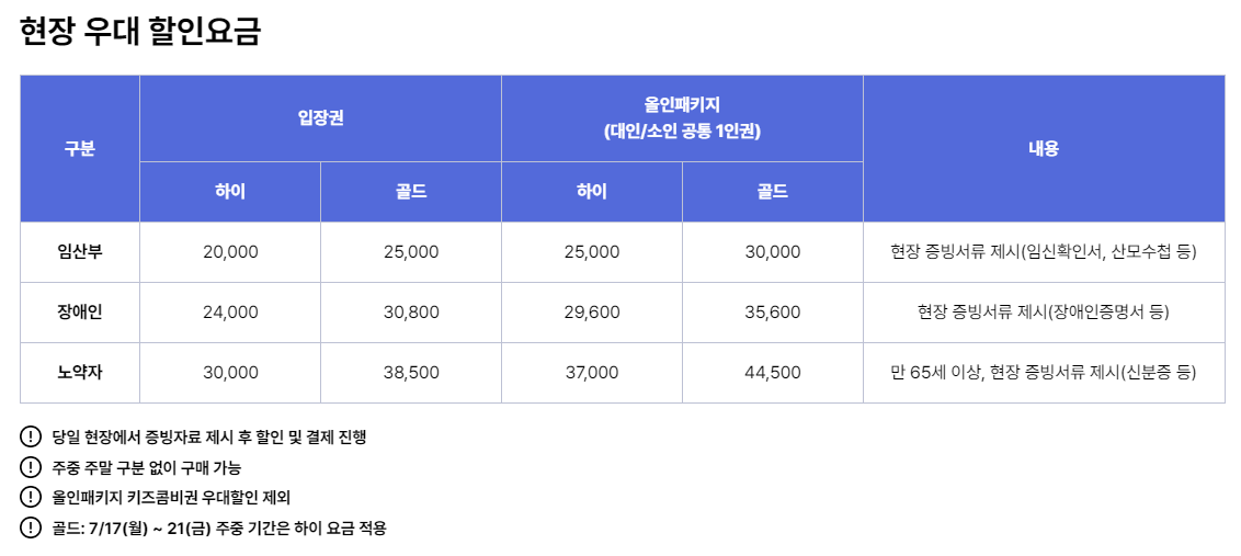 ⊙ 올인패키지(대인/소인 공통 1 인권)